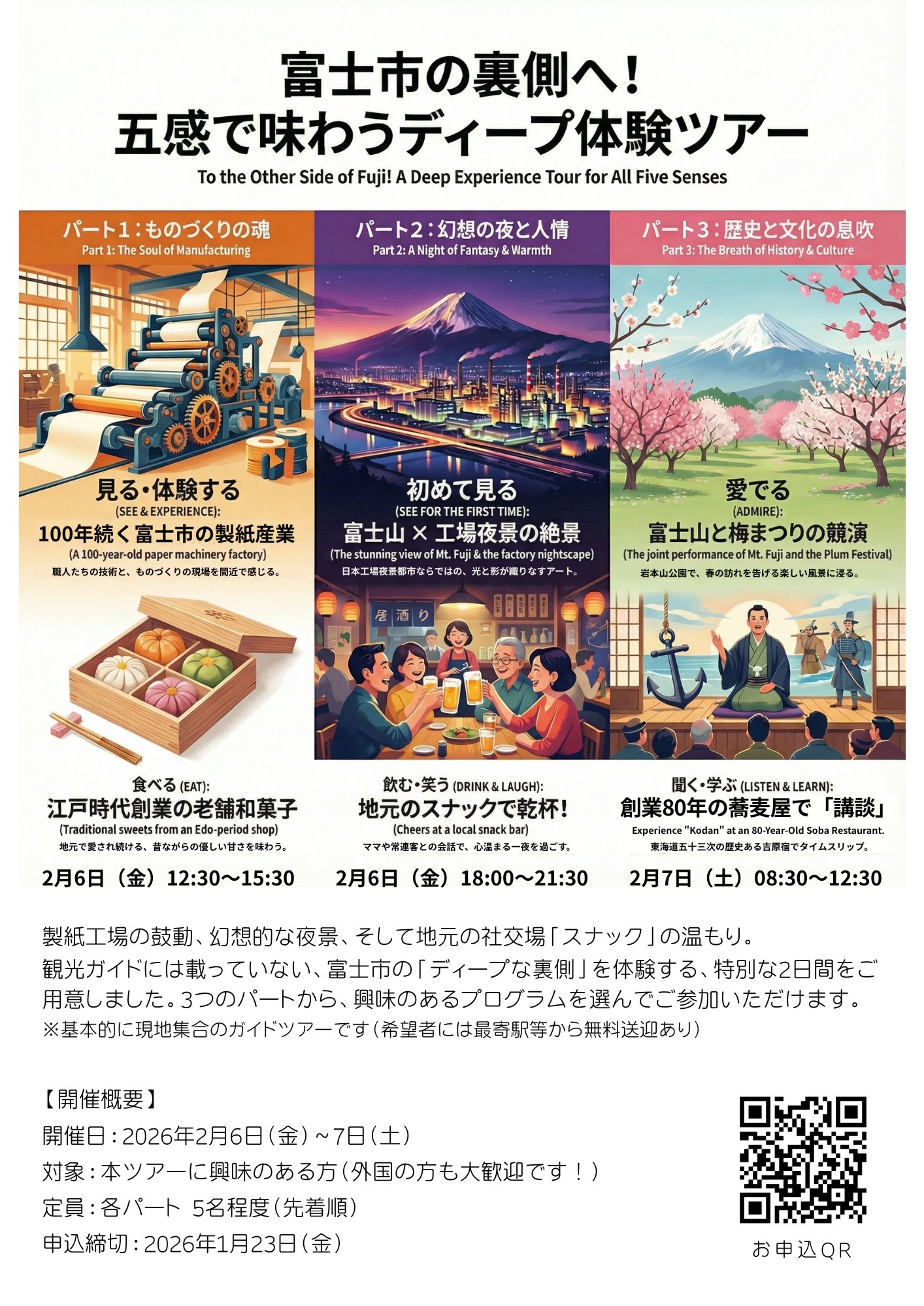 富士市が企画する産業・観光・食を周遊するツアーの一角として、今回行政の方から大変ありがたいお話を頂き、実現しました。